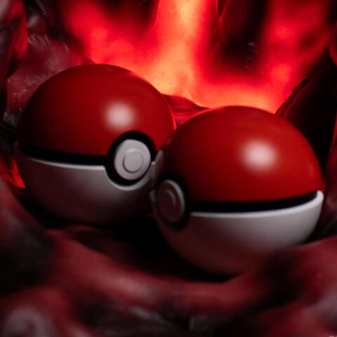 Two enormous, wrinkled, glowing crimson Poke Balls.